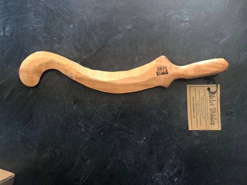 Each "rustic" Hikki Stikk is also unique, taking its shape from the native branch, from which is was carved.